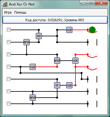 Цель игры: Опустить зеленый круг (находится справа от игрового поля) вниз.